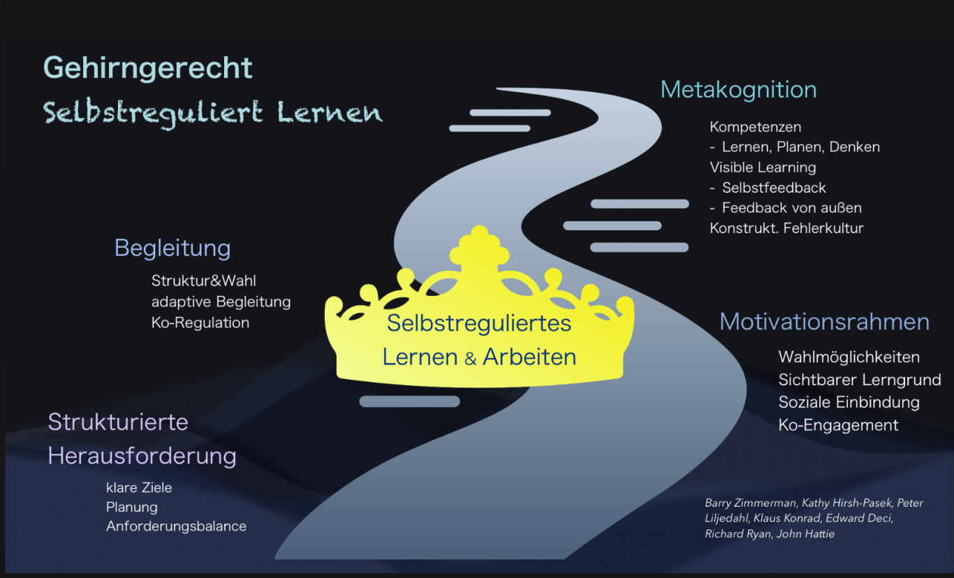 Hier spannen wir einen Gelingensrahmen zum selbstregulierten Lernen und Arbeiten, der führende Experten der Thematik integriert. Du kannst die Gedankenkarte im Text oder im Video abrufen.